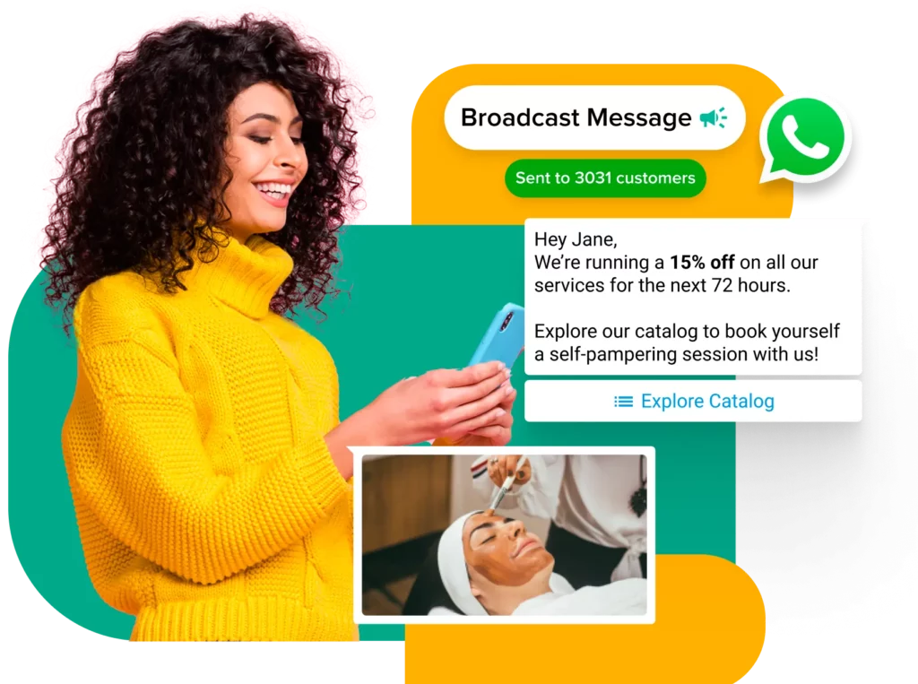 Grow your Spa & Salon business with scheduling, payments, and catalogs all through WhatsApp.